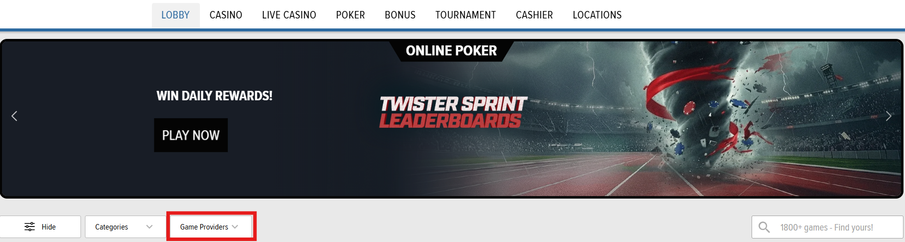 To filter by game provider, tap “Filter” under “Lobby” on the home screen, and then select the game providers you want.